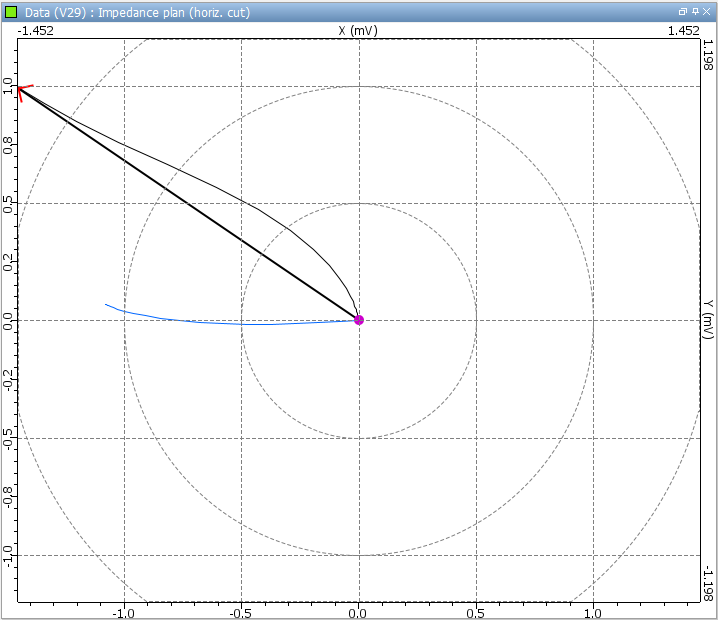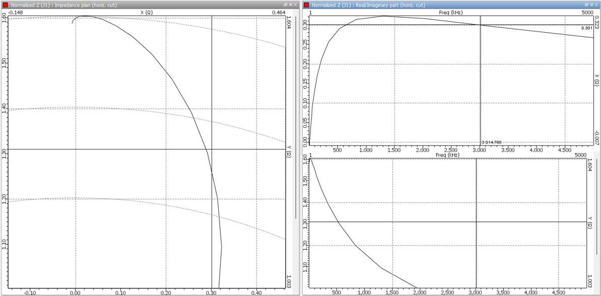 The probe response module helps you understand and interpret Impedance diagrams for various frequencies or for various lift-off values. Results can be displayed in reduced units (normalized) or in Ohms.